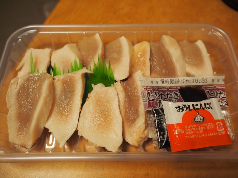 スーパーに寄ってみると、「鶏のたたき」を見つけたので思わず買ってみました。