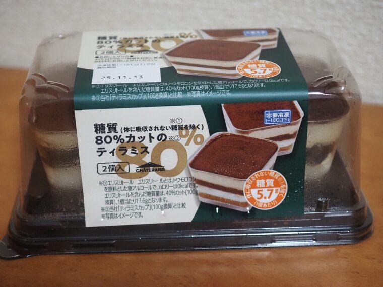 シャトレーゼから販売されている「糖質80%カットのティラミス2個入り」を食べてみました。