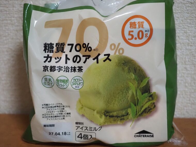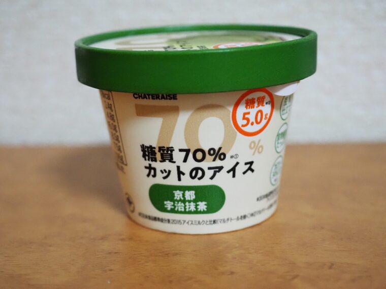 シャトレーゼから販売されている「糖質70%カットのアイス 京都宇治抹茶」を食べてみました。