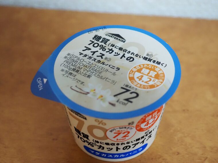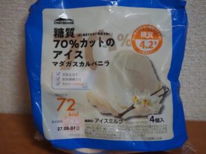 シャトレーゼから販売されている「糖質70%カットのアイス マダガスカルバニラ」を食べてみました。