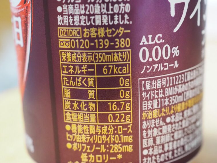 「ノンアルでワインの休日プラス+(赤)」も飲んでみました。