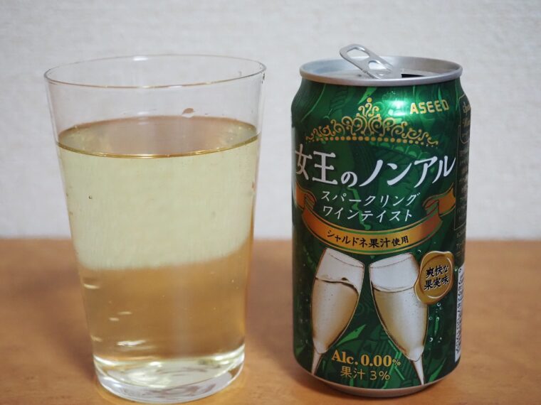 ノンアルコールワイン「アシード 女王のノンアル スパークリングワインテイスト シャルドネ」を飲んでみました。