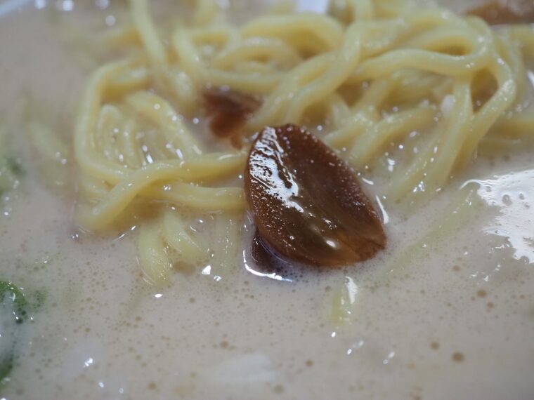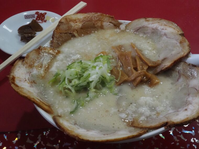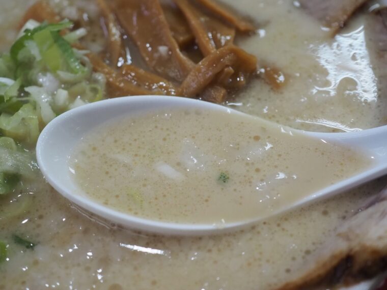 昆布や煮干しのスープに慣れている自分には、豚骨ラーメンの脂は強烈過ぎます。