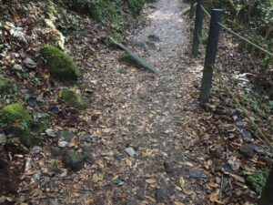 道そのものが湿り気を帯びて、滑る可能性があるので、歩きにくい靴で行くことは絶対にオススメしません。