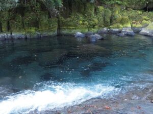 水が青く見えます。