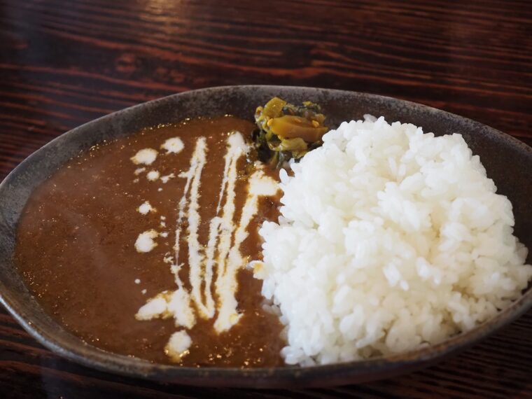 食材がゴロゴロと形を残したまま入っているのではなく、ペースト状に煮込まれているタイプのカレーですね。