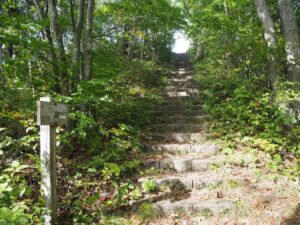 10分ほど歩くと、階段が見えてきます。