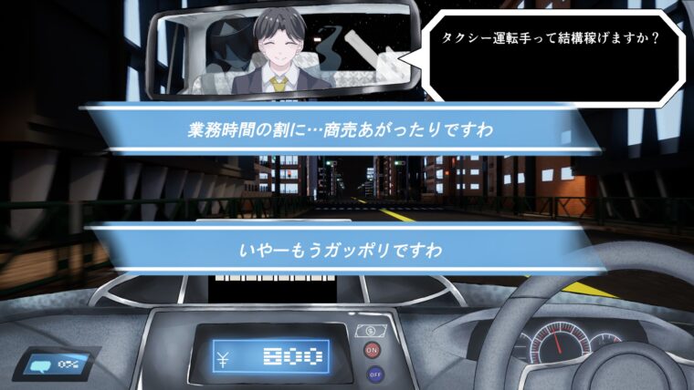 メーターをイジったり、遠回りしたり、タクシーの運転手としてお客様からぼったくるゲームです。
